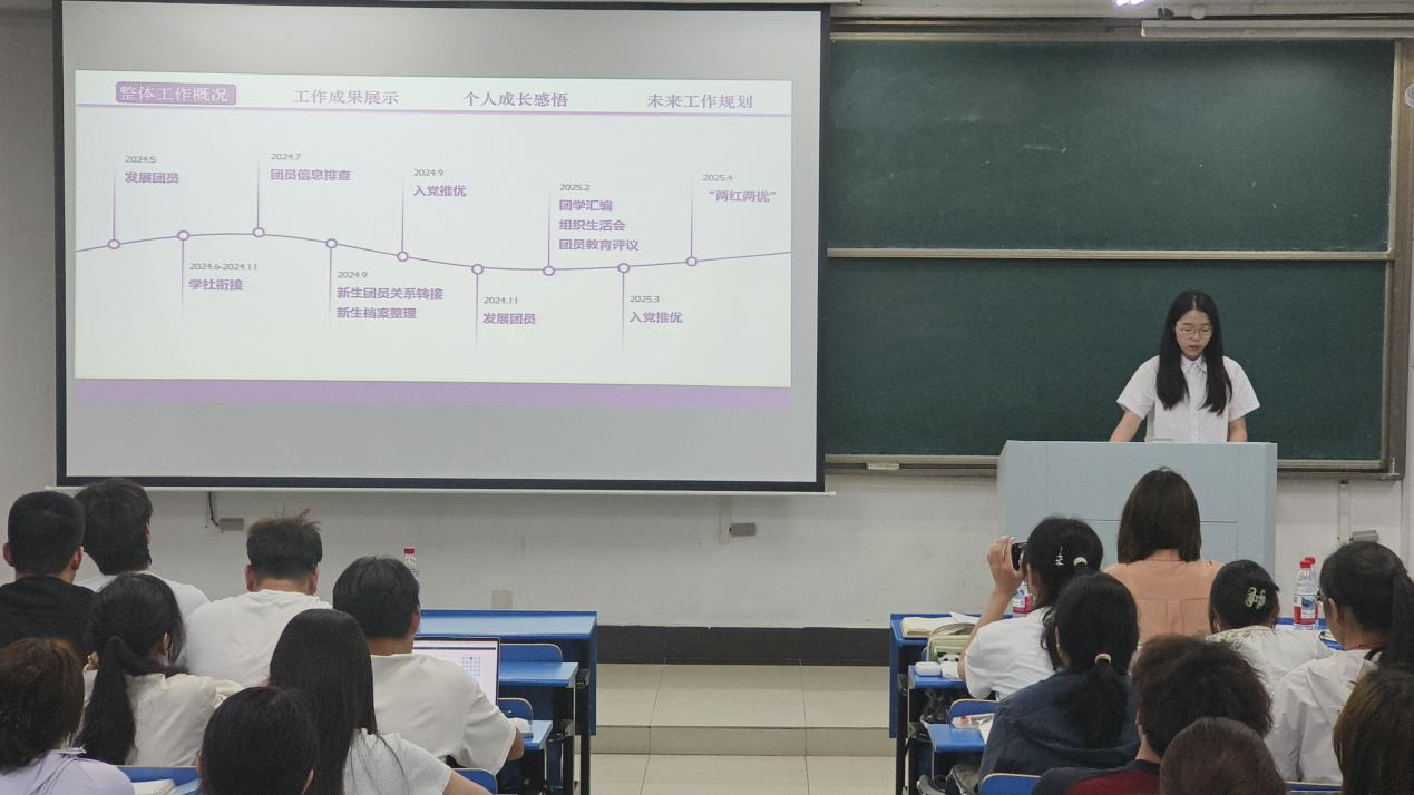 在汇文楼D408召开2024-2025年度团学工作述职答辩会,院党委副书记、副院长、纪委书记赵颖,院团委书记赵玉婷,院团委副书记李军慧,院团委副书记曹宇担任评委,院第十二届团学组织各部门负责人作述职答辩,院第十三届团学组织各部门全体成员参与会议。