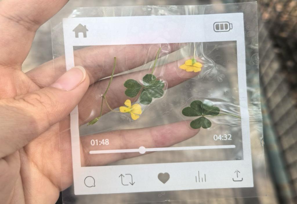 本次活动通过视觉与触觉的双重体验,引导学生专注当下、感受自然。现场准备了DIY书签制作工具,同学们利用校园内采集的合欢花、含羞草叶等植物素材,创作出独一无二的书签。活动现场设置了“自然故事分享角”,同学们围坐在一起,讲述采集植物时的趣事:有人在清晨的露水未干时,在图书馆旁的合欢树下收集飘落的粉白花瓣;有人为了寻找完整的含羞草叶,蹲在实验楼后的草丛前等待半小时…… 这些微小而美好的瞬间,串联成一场关于“专注当下”的集体疗愈。“当我的指尖触碰到新鲜叶片的湿润感,突然意识到自己已经很久没有这样慢下来感受生活了。”数应231 班的曹蕾展示着书签上的叶脉书签,“叶脉的纹路像树的年轮,仿佛在提醒我:成长需要时间,不必焦虑追赶。”