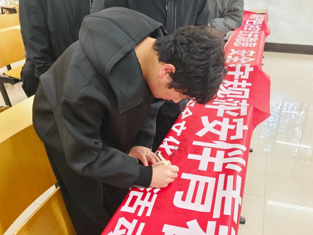 班会期间,各班级结合学院实验室设备操作与用电规范等专业特点,借助真实事故案例视频,重点讲解了设备使用前检查、突发断电应急处置、实验数据存储安全等关键实操要点。在互动交流环节,同学们踊跃分享实验课中遇到的安全隐患,归纳出“实验后设备未断电”“数据U盘随意插拔”等常见风险行为,提醒同学们增强风险意识。班会尾声,全体同学在“消防严把控,实验无隐患;安全守规范,平安伴青春”的安全横幅上郑重签名,以实际行动表达对“规范操作、互相监督、及时报告”安全准则的坚定承诺。