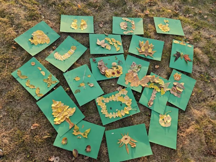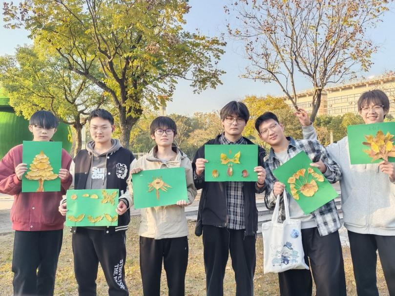 活动以“自然为媒、艺术疗心”为核心,鼓励同学们走进校园角落捡拾落叶,自由发挥创意进行创作——既可独自构思、挥洒灵感,也可组队协作、共筑佳作。银杏的金黄、枫叶的火红、梧桐的掌状纹理,不同形态与色彩的叶片在学生们手中焕发新生:灵动的小动物、静谧的秋日盛景、抽象的情感构图,一幅幅作品既饱含对自然之美的捕捉,更蕴藏着青年学子的内心感悟与成长思考。工252班马雅璇分享道:“在专注拼贴的过程中,我感到内心逐渐平静下来。和同伴一起挑选叶片、构思画面,不仅让我们的配合更加默契,也让我在合作中感受到了温暖与支持。”