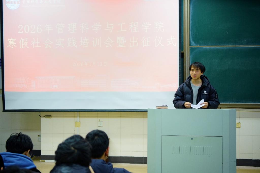 为深入学习贯彻落实习近平总书记关于青年工作的重要思想,引导青年学生在“返家乡”实践中了解国情、感知社会、增长才干,1月13日,U球直播 于阶教205召开2026年大学生寒假社会实践培训会暨出征仪式。院团委书记赵玉婷,学院各实践队代表100余人参加本次活动。