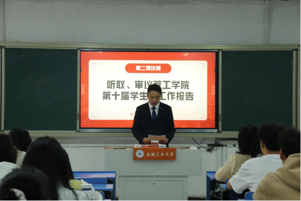 会上,学院第十届团委学生会成员汇报了学生会工作报告,总结了一年来学生会工作取得的成绩。参会人员听取并审议了第十届学生会工作报告,讨论明确了未来一年学院学生会工作的新要求与新目标。随后,大会就代表候选人情况进行了介绍,通过民主选举产生了李嘉懿、姚文旭等15名本科生以及乔恒赟等3名研究生作为代表出席安徽工业大学第七次学生代表大会、第三次研究生代表大会;选举产生了学院第十一届学生会主席团成员3名。