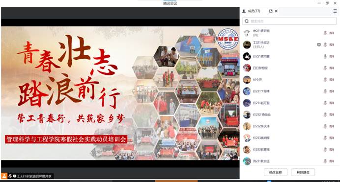 为全面落实好“挑战杯”参赛项目的指导工作,帮助参赛队伍优化项目呈现,2月14日下午,U球直播 组织了“挑战杯”线上模拟答辩活动。院团委书记赵玉婷老师、学院国赛一等奖团队、晋级校赛团队成员参加了本次会议。