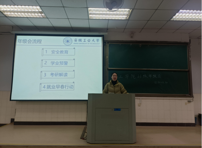 会上,钱丹丹以考研解读为主题,在考研择校、备考规划和心态调整等方面为备考学生解疑答惑,鼓励学生们摆正心态,制定详细的考研计划,注重交流与合作,全面提升备考效率。在求职方面,钱丹丹提醒同学们要做好心理调整、简历美化、面试、信息搜集、和能力匹配五大准备。最后强调未来规划应秉持“多条腿走路”的原则,并向同学们介绍了西部计划、士兵计划、研支团等就业政策。任静重点围绕人身安全、生活安全、财产安全、防诈骗、电动车管理等方面展开安全教育,提醒学生警惕各类“陷阱”;并从课程学分角度督促学生关注自身情况,尽早尽早完成相关学业要求。