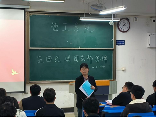 通过支部自主申请、申报材料初评,共9个团支部入围评选答辩会。答辩现场,各团支部围绕制度规范、日常工作、阵地建设、特色活动开展等方面总结汇报上一年度工作开展情况,重点突出支部在创新创业及第二课堂活动的特色举措,彰显了一年以来的工作成绩和特色。评委结合现场答辩表现、团支书工作手册、班级材料等对各支部进行评分。答辩会后,赵玉婷充分肯定了各团支部一年来的工作成果,同时强调各团支部要对标校、院优秀团支部,落细、落实支部“8+”要求,多以支部为单位开展特色主题实践活动,服务青年学生成长,努力做好党的助手和后备军。