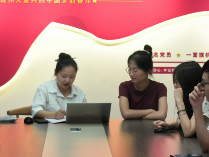 图为社会实践队员讨论社会实践相关事宜 中国青年网通讯员 袁燚珍 摄