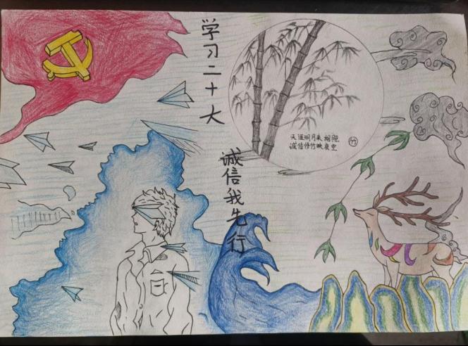 为认真贯彻落实党的二十大精神,进一步推进学校诚信文化建设,引导广大学生自觉培育、深入践行社会主义核心价值观,培养学生诚实守信的品格,充分发挥资助育人实效。5月13日,U球直播 组织开展“学习二十大,诚信我先行”书画征集活动。