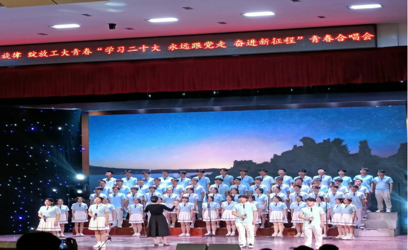4月22日晚,安徽工业大学“学习二十大永远跟党走奋进新征程”大学生合唱比赛在秀山校区大学生活动中心举行,共有十四支学院代表队参加比赛。
