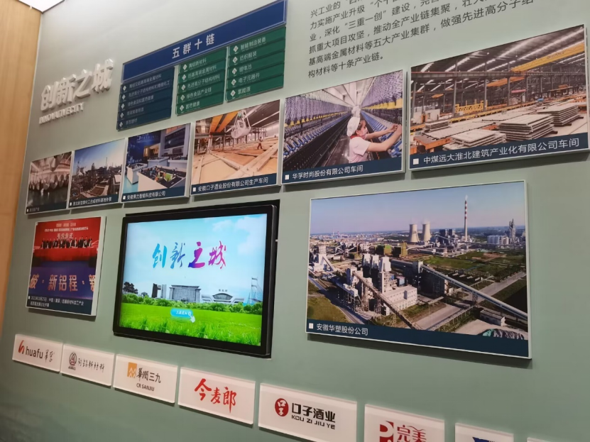 图为实践队员在讲解员带领下所见的创新之城、五群十链介绍展板。中国青年网通讯员 朱泽静 摄