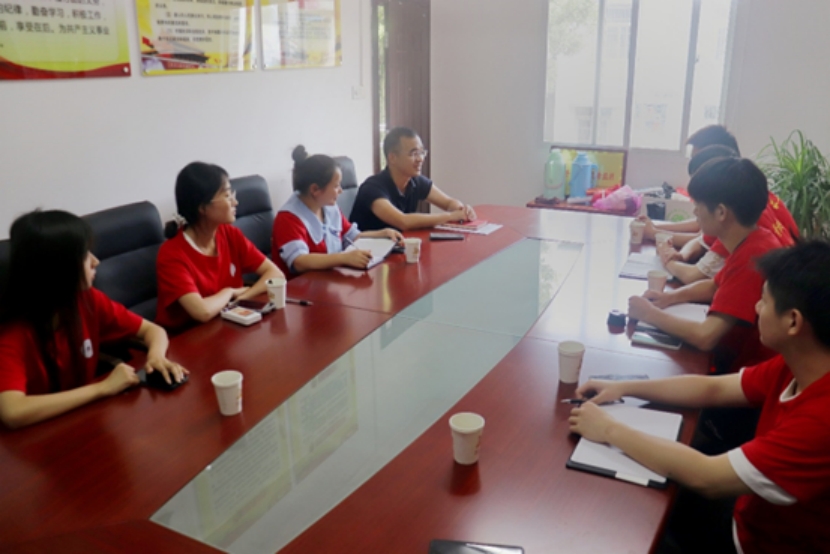 图为实践团队队长正在与团县委书记交流 骆政洁摄