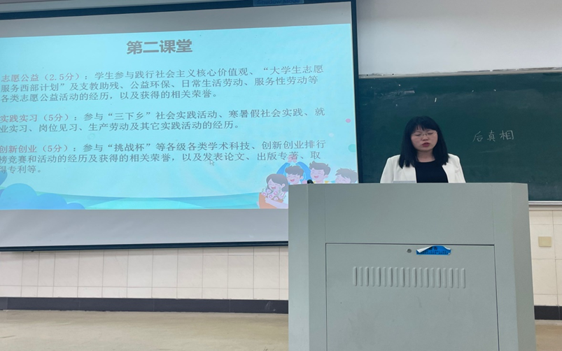 会上,任静、万媛媛强调推优入党的相关条件以及评优的细则,严格按照学生手册规范流程,讲求公正,公平,公开。就评优资格,评价标准是德、智、体、美、劳全面发展,第一课堂与第二课堂相结合的办法。随后,辅导员介绍了“挑战杯”、“辩论赛”及“校运动会”等赛事,鼓励21级学子积极参加,为U球直播