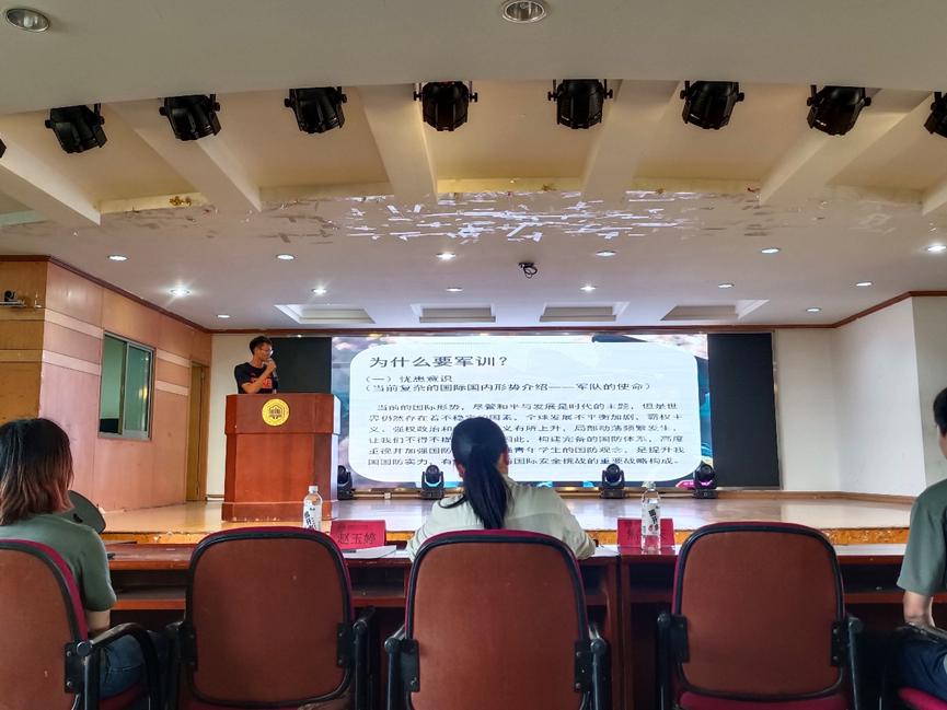 随着宏伟庄严的国歌声响起,军训动员大会正式拉开序幕。会议伊始,为帮助参训新生养成正确的着装规范及良好的精神风貌,李兵、侯子宜带领全体新生进行军容风纪整理。会议上,焦朋庆详细介绍了学校军训安排和军训考核要求,并结合国内外形势,从忧患意识、责任意识和发展意识三个方面细致讲解了开展军训的重要意义。在寝室内务方面,学院退伍士兵为同学们现场示范、详细讲述了叠军被的具体步骤,四四方方的军被赢得了所有新生热烈的掌声。随后新生代表吴麟发言,她表示22级学生将以青春昂扬的姿态迎接此次军训。 会议尾声,院团委书记万媛媛指出在军训过程中,全体参训成员要守纪律,敢吃苦,在军训中磨练精神意志,提升能力素养,将军训作为入学的第一课。