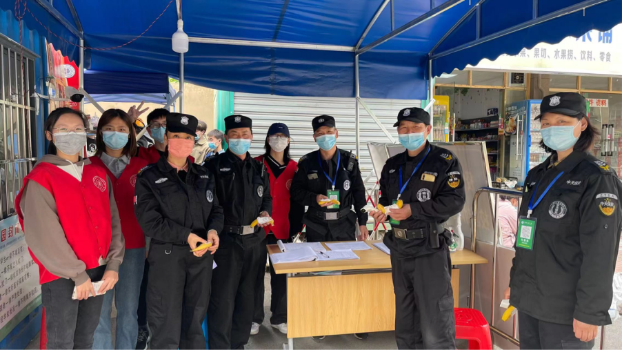 志愿者们身着志愿服,佩戴志愿帽,将粘贴有感谢语与祝福语的慰问品一一送至宿管、保洁、门卫等基层工作人员手中,礼貌地向坚守在岗工作人员表示由衷的感谢,并送上“五一劳动节快乐”的祝福,所有工作人员也对志愿者们礼貌亲切的慰问表示感谢。活动结束后,志愿者同工作人员进行拍照留念,留下了暖意浓浓的氛围。