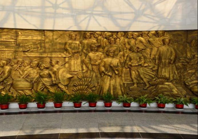 金黄色的浮雕墙上记载着烈士们英勇奋战的故事,篆刻了历史那不灭的身影。这不是简简单单的一面浮雕墙,来到这里的每一个人都知道,这上面镌刻了多少人的一生,承载了多少烈士无畏奋战的英魂,它是历史的承载者,受无数人敬仰。队员们站在浮雕墙前,感受那迎面而来的雄浑厚实,万籁俱寂下好像又听到那冲锋的号角,一声,又一声。碑文边是英雄们的名字,在那上面几乎看不到一丝灰尘,即使经过几十年的风雨,那些金色的字始终灿烂,站在碑前的队员们心灵纯粹干净,就像战士们始终如一地坚定自己的信念一样。
