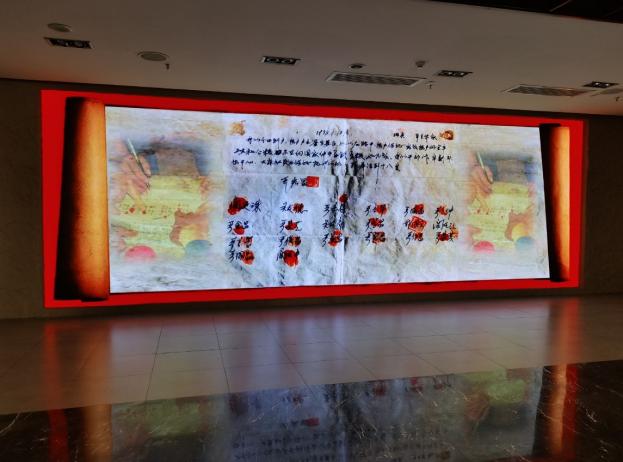 安徽凤阳小岗村被誉为中国农村改革第一村,是家庭联产承包责任制开创发端的地方,中国农村改革的序幕从此拉开。为深入了解这段历史,在队长王晓语的带领下,实践队伍来到了大包干纪念馆。纪念馆门头上的大字首先映入眼帘,实践队员了解到馆名是由万里同志亲笔题写的。进入馆内,队员们看到了18位大包干带头人签订的“包产到户”生死契约,18个鲜红的手印,雕塑刻画的村民签字时坚定的神情,使队员们切身地感受到了“敢闯敢试、敢为天下先”的小岗精神,同时队员们也受到激励,要大胆创新,大胆创业,要多学习,干实事,敢想、敢闯、敢试。
