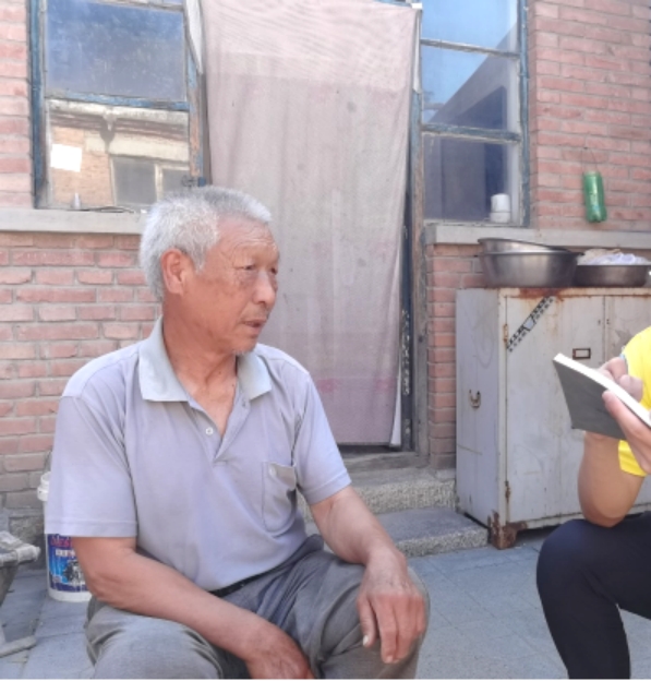 张明生身材不高大,简短的白发之下有一双祥和的眼睛,虽然岁月为他增添了白发和皱纹,但丝毫掩盖不住张老的精气神。马书记向他说明了队员们的来意,他和蔼地点了点头,并且示意同学们坐下休息。