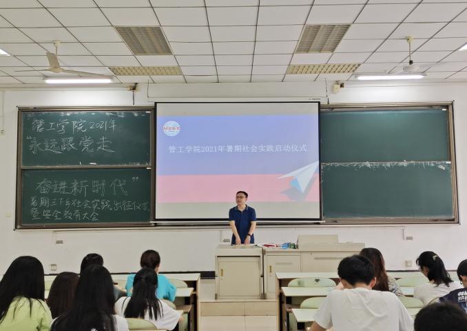2021年暑期社会实践活动启动仪式在教三南201举行,院党委副书记王功成、院团委书记万媛媛老师出席,学院2021年暑期社会实践队员到场参加。
