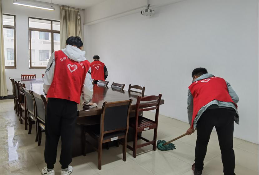 4月26日,学院青年志愿者协会组织开展以“青春“三牛”我争先 服务校园我贡献”为主题的志愿活动。12名志愿者有序地展开了对秀山校区汇文楼A楼一至五层办公区域、公共区域进行物品清理和卫生保洁。