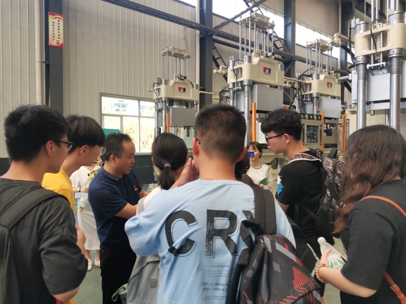 暑假社会调查广德团队来到了位于安徽省广德市的磐石油压工业有限公司进行实践学习。过程中,通过相关工作人员对该公司的介绍讲解,实践队员们对其发展历程有了一定的认识,后以提问咨询、深入生产车间参观生产流程等方式,进一步了解到公司现今工作布局和重点,以及未来近几年的发展规划。此外,实践队员还结合着专业所学知识,以乡村振兴为落脚点,在观摩交谈中学习与企业探讨发展经验总结与工艺提效,多角度探索可引领乡村振兴的高发展之路。