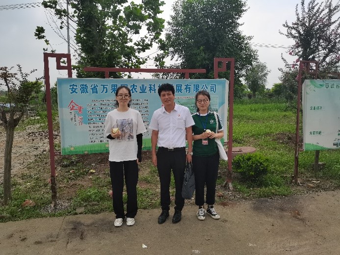 2名实践队员魏晓杰、李佳慧前往安徽省界首市光武镇,用他们青春的身影探寻大学生群体在乡村振兴战略中所能发挥的作用,采访安徽万果园农业科技发展有限公司总经理王光晋并开展实地调研。