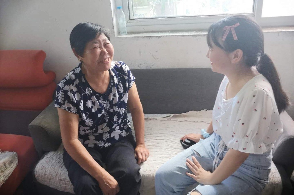(图为实践队员在和奶奶聊天)