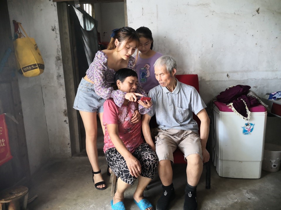 实践队员们继续行进到第二个实践地点——位于安徽省宣城市宣州区朱桥乡周村罗西组。这户家庭也是两位高龄爷爷奶奶在家,他们的子女常年在外打工,留下孙女在家读书,家庭条件比较艰苦。爷爷奶奶的街坊邻居经常会在网上买衣服和一些家居用品,并且常常夸奖网上物品物美价廉,因此爷爷奶奶也很想学会网购。