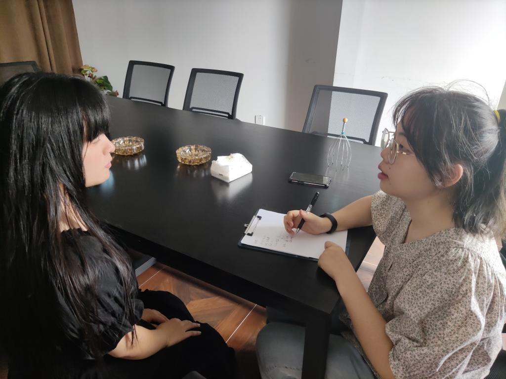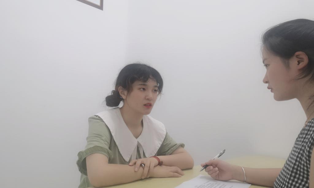 (图为实践队队员龚浩月在采访郑同学)