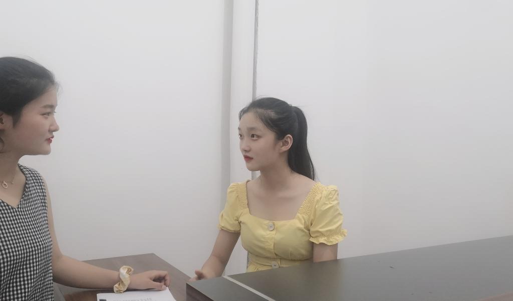 (图为实践队队员龚浩月在采访叶同学)