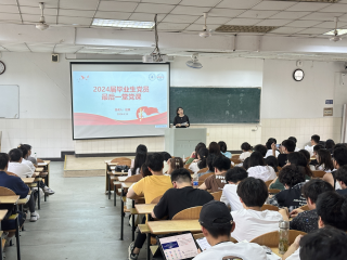 党委副书记、副院长、纪委书记赵颖在阶教103讲授专题党课。辅导员代表及学院2024届全体毕业生党员100余人参与学习。