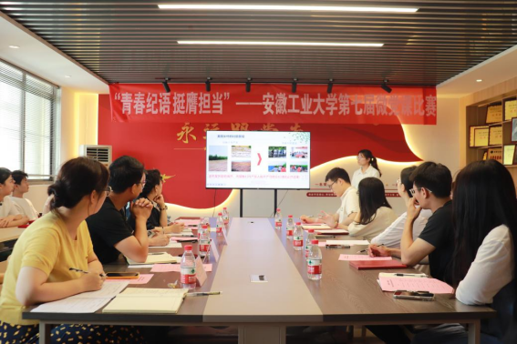 在汇文楼A502举办“青春纪语,挺膺担当”第七届微党课比赛。学院全体领导班子、副处级组织员、辅导员、教师代表、各支部师生党员等60余人观摩学习。