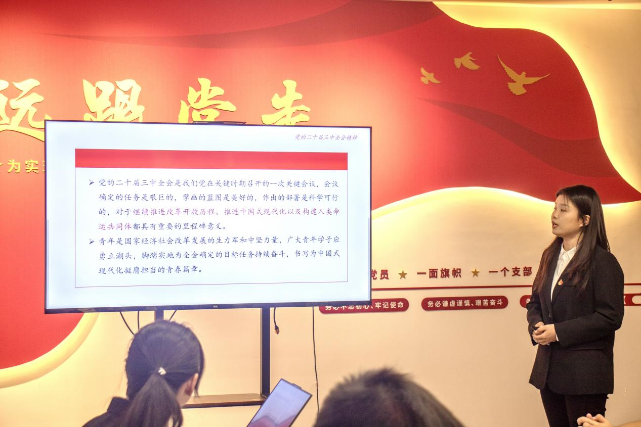 分团委在汇文楼A502举办党的二十届三中全会精神专题宣讲会。活动由校大学生宣讲团成员王丹丹、杨阳、朱仔仪主讲,学院全体学生骨干参加会议。