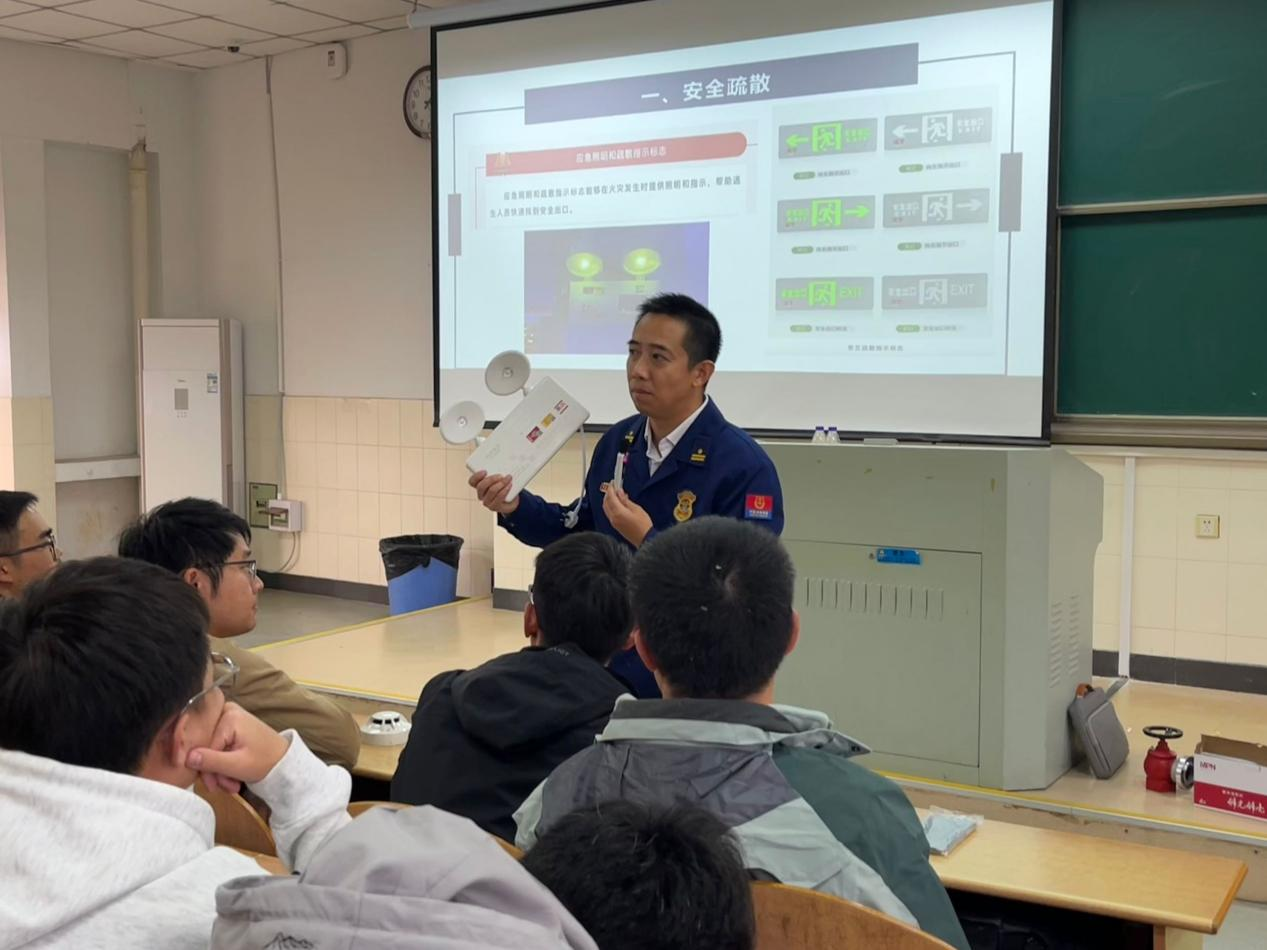 讲座中,杨武洲详细介绍了消防安全内容以及火灾的危害性、发现火情的处置办法、火场逃生的自救方法等消防安全知识,现场展示了防火门、安全疏散指示标志、消防栓等消防设施。同时,还结合近年来发生的典型火灾案例,深入剖析了火灾事故的原因和教训,让师生们深刻认识到消防安全的重要性。培训结束后,杨武洲与师生们深入学生宿舍、实验室等场所,对消防设施的完好性、疏散通道的畅通性、应急照明和指示标志的规范性等进行实地检查、讲解具体操作流程。针对存在的问题,立即提出了整改意见,确保消防设施的有效性和可靠性。