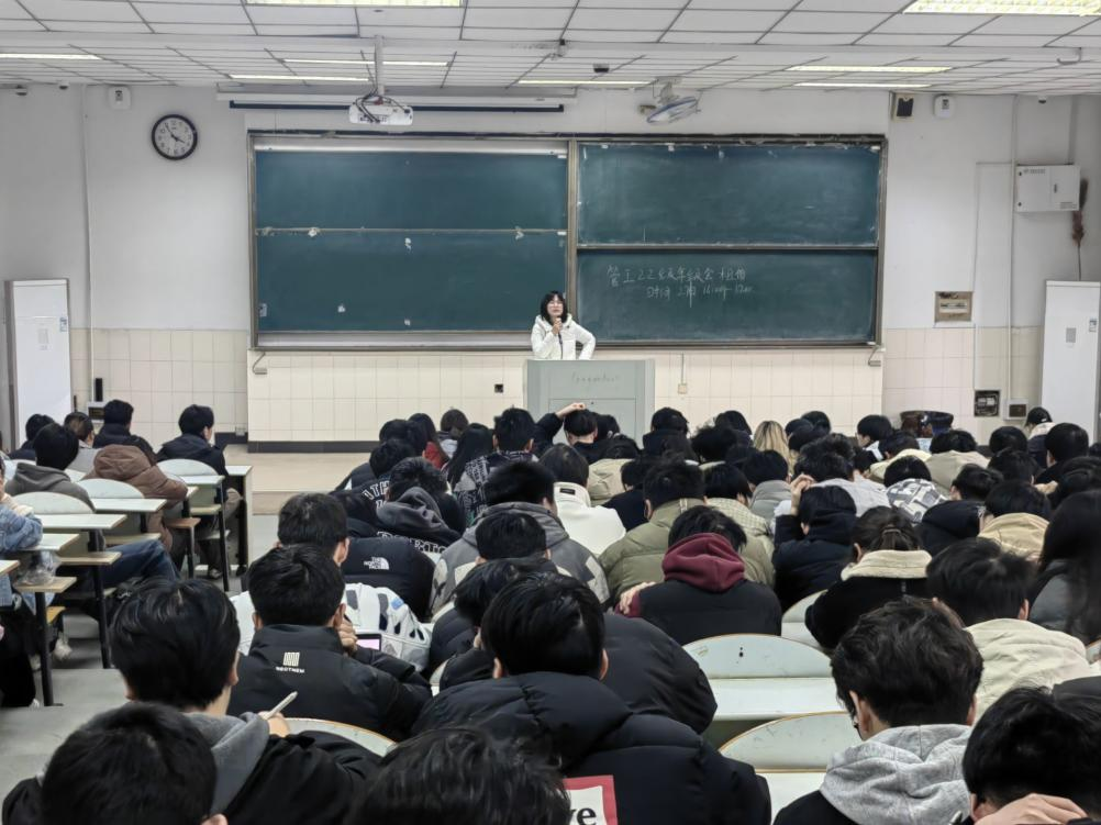 会上,赵玉婷首先对本学期的各项工作开展进行了总结,赞扬了同学们获得的各类优异成绩。接着重点强调了诚信考试,提醒同学们在期末备考阶段需认真复习,严格遵守考场纪律。对于即将到来的寒假,焦朋庆结合考研及就业,让同学提前了解毕业的方向,做好自己课程学分的统筹,能充分利用寒假时间和家人一起做好未来的规划。赵玉婷通过举例近期电信诈骗案例,要求同学们加强自身防范意识,时刻注意保护自身财产安全。同时,也提醒同学们提高自身安全意识,注意每天及时签到。最后,鼓励同学们积极参加寒假社会实践。