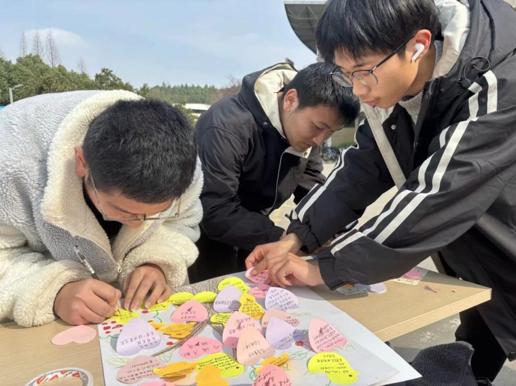 在“共育生命树”环节,同学们在便签纸上写下对生命的感悟。一张张写有“向下扎根,向上生长”“让希望与春光共舞”的绿色叶片,拼贴成一棵枝繁叶茂的“生命之树”。活动还创新推出“我的花语日记”手册,通过图文并茂的方式记录植物生长轨迹,将生命教育融入日常观察。2024级工程造价专业学生吴琦在活动后感慨:“看到自己种下的花种,更懂得敬畏生命、珍惜时光。”