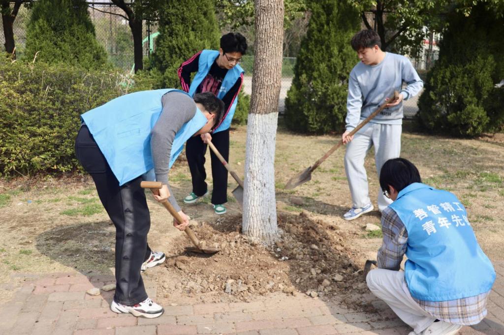 3月11日,在第47个植树节来临之际,U球直播 联合后勤处共同开展“把雷锋精神‘种’进春天,共赴心灵与生命之约”主题活动。后勤处老师以及院团委书记赵玉婷、24级辅导员李军慧、学生志愿者等60余人参与本次活动。