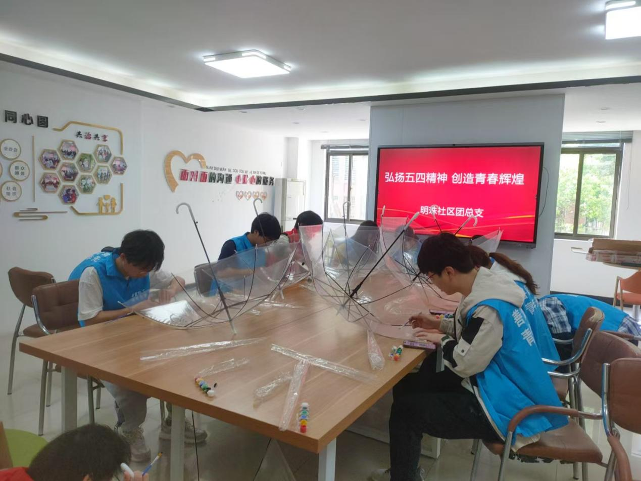 青年志愿者协会于4月25日上午赴马鞍山花山区明珠社区组织开展创意绘伞“知产”添彩志愿活动。