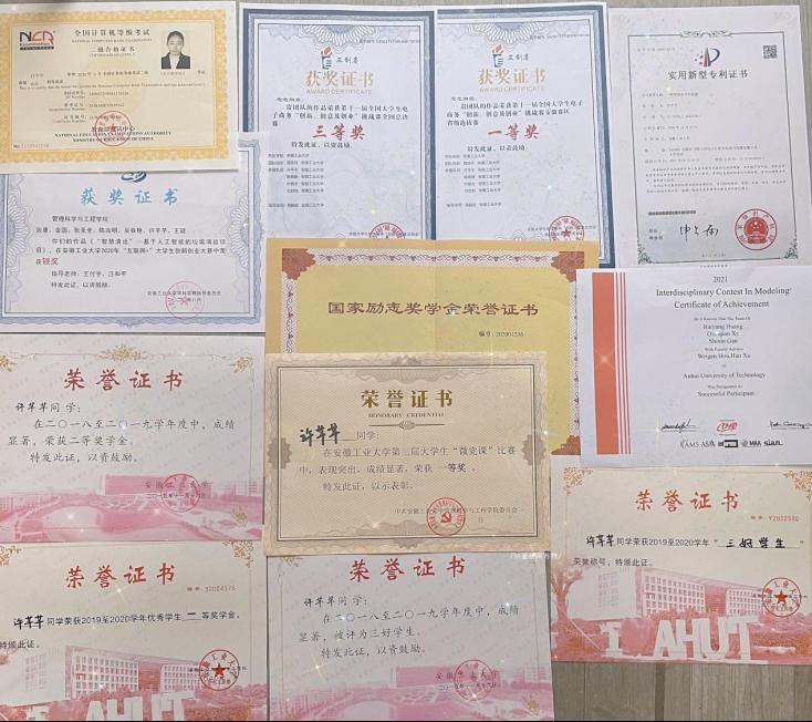 已经了解了保研大致要求的许芊芊从大二就开始参加大大小小的比赛,有的比赛甚至拿到了国二的好成绩。当然,成功的道路上并不是一帆风顺的,也有一些比赛没有走出校门。许芊芊在谈到那些没有取得更好成绩的比赛时有些遗憾:“每一个比赛我都全力以赴,为它们耗费了大量心血,在我看来它已经很出色了,但还是没有走出去,我其实有些惋惜。但我不气馁,我相信所有的努力都会得到回报的,只是并不一定是你想的那一件事,就像之前,我刚得知一个比赛没有走出去,没过多久就又告诉我另一个比赛得了国二的成绩。”