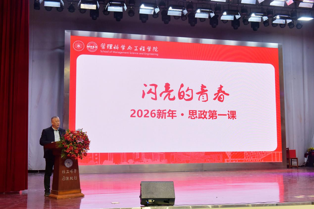 校党委常委、副校长闵凡飞讲授2026新年·思政第一课。闵凡飞肯定了学院连续三年举办“闪亮的青春”系列活动的意义,回顾近年来学校在教学科研、人才培养、实践育人等方面取得的成绩,肯定了学院的稳步发展。向受到表彰的先进集体和个人表示祝贺,向学院全体教职员工致以敬意,号召全体同学以受表彰的先进集体和个人为榜样,将个人理想融入强国建设的宏伟蓝图。围绕青年成长,闵凡飞提出三点希望与同学共勉:一是振奋“龙马精神”,将个人理想融入祖国前途、民族命运,以崇高志向引领青春航程;二是秉持“快马姿态”,求真学问、练硬本领,以扎实学识筑牢成才根基;三是争做“一马当先”,在关键时刻挺身而出、在创新创业中勇闯难关、在志愿服务中无私奉献,以挺膺担当书写青春篇章。闵凡飞寄语同学们珍惜韶华,在“十五五”规划开局之年砥砺前行,在民族复兴实践中成就个人梦想,创造时代荣光!