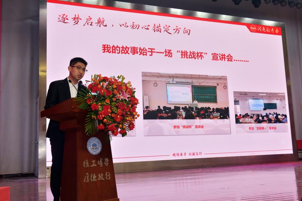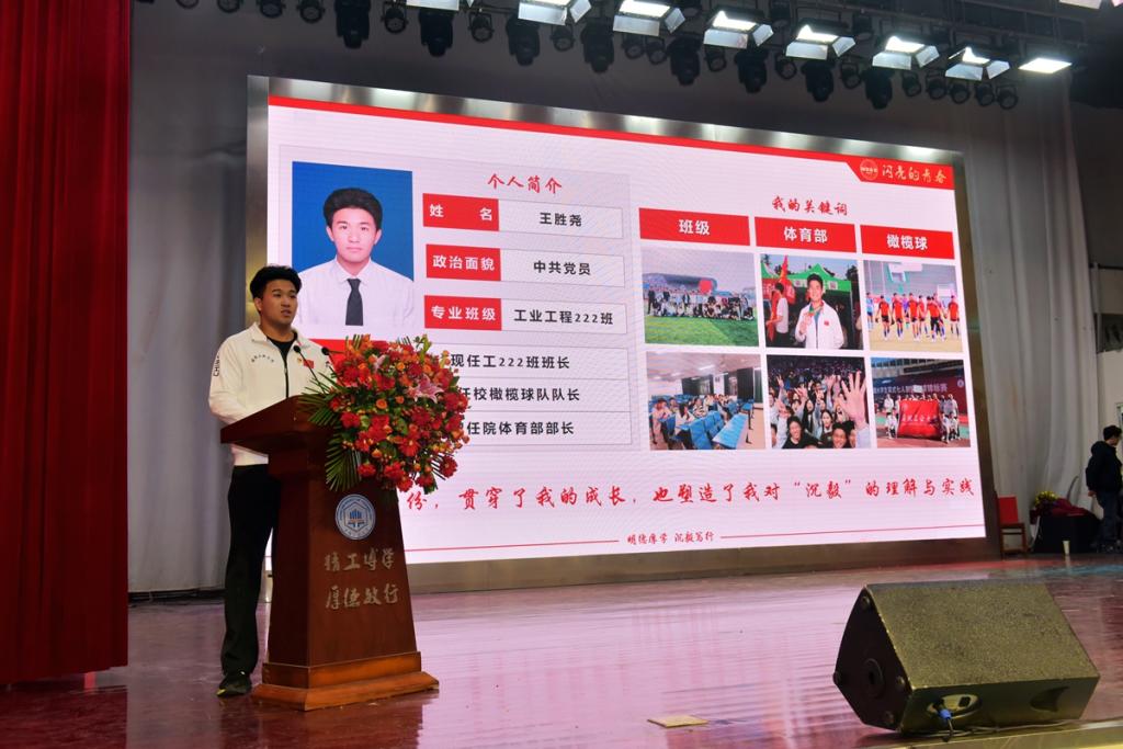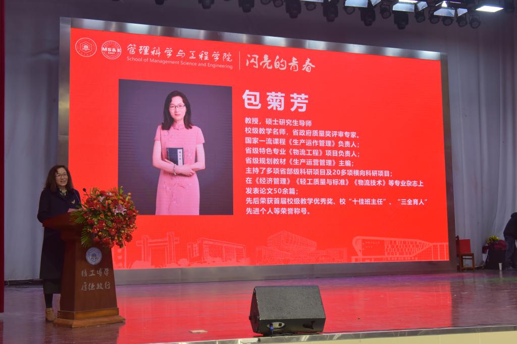 在青春故事篇章,校“十佳班级”工业工程231班学生代表杜元元、周荣榜分享了班级凝心聚力、锤炼本领的建设历程;优秀推免生代表工程造价222班台昌俊分享了自己获第十九届“挑战杯”国赛三等奖的故事,回顾了以厚学回应时代所需、以实践锻造综合素养的成长心路;省大学生体育舞蹈比赛二等奖获得者信息管理与信息系统223班汪竟彤讲述了一个体育舞蹈生从0到1的突破之路;全国大学生橄榄球赛第六名我校橄榄球队队长工业工程222班王胜尧分享了在班级、体育部与橄榄球队之间勇担责任、坚持所爱的团队故事;教师代表包菊芳以“情怀与坚守”为主题,分享了从教40年以来的感悟与初心。