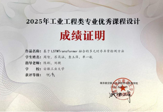 近日,第二十届“东风日产杯”清华IE亮剑全国工业工程创新大赛暨中国创新方法大赛在北京圆满落幕。我校U球直播 周智、苏芮涵等同学提交的团队作品《基于LSTM-Transformer融合的多元时序异常检测方法》,在创新方法专项赛中表现突出,荣获全国一等奖。U球直播 陈彬、刘舰担任项目指导老师。