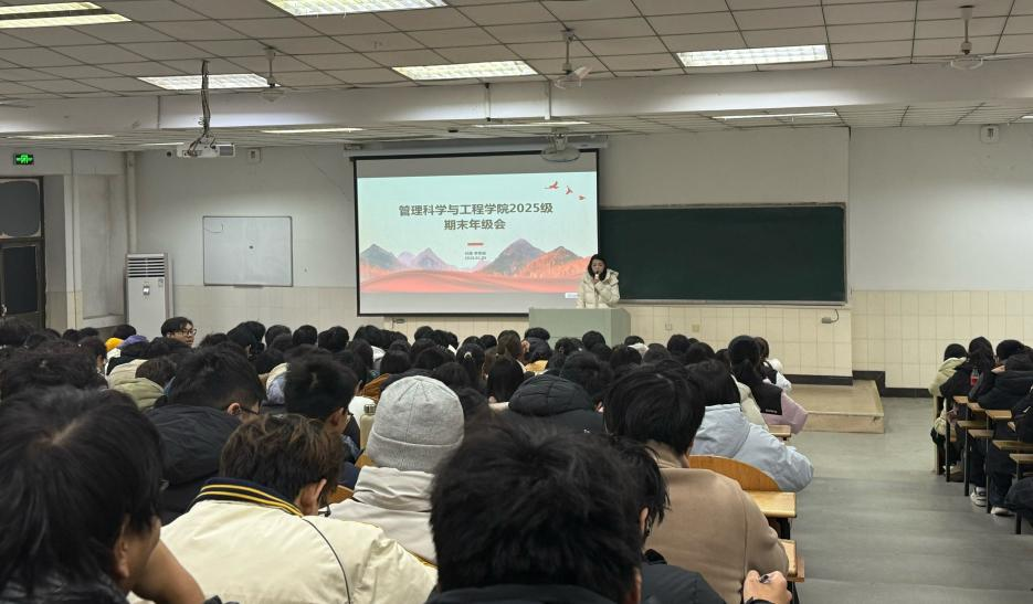 在阶教103召开2025级期末年级大会暨寒假社会实践动员会。会议由辅导员李思雨、任静主持,2025级全体学生参加。
