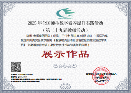 近日,由教育部教育技术与资源发展中心组织开展的“2025年全国师生数字素养提升实践活动”评审结果揭晓。U球app 实验中心申报的虚拟仿真实验教学案例《智慧物流自动化设备虚拟仿真实验教学项目》(负责人:陈彬,成员:王付宇、张洪亮、刘舰、宋红)成功入选,并被列为“高等教育专项(高校数字技术与装备创新应用)”展示作品。