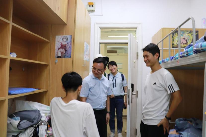迎新之余,为切实了解新生需求,帮助同学们尽快适应新环境,学院党委副书记王功成及两位新生辅导员来到寝室走访新生。他们与新生热切地交流,询问着同学们对学校生活的感受,并不断解答同学们的疑惑。在交流的过程中,王功成激励新生在未来的学习生活中积极进取,同学们也纷纷表示会珍惜大学时光,脚踏实地、认真规划好自己的大学生活。
