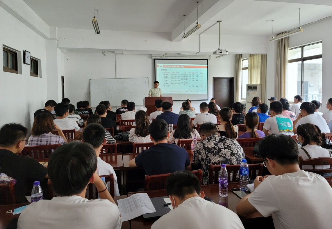 发展概况、学科建设、研究生招生、研究生培养情况四个方面对新生进行了专业思想教育。并对全体新生提出殷切期望,希望他们秉承“明德厚学,沉毅笃行”的学习精神,树立远大理想,明确奋斗目标,科学规划学习生活,全面发展,学业有成。