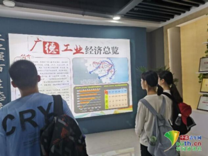 图为实践队员参观广德工业经济总览展板。中国青年网通讯员傅宝洁供图