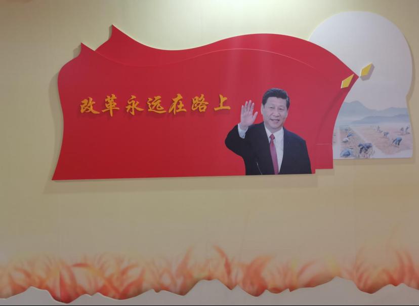 图为大包干纪念馆中习近平总书记语录的标语。