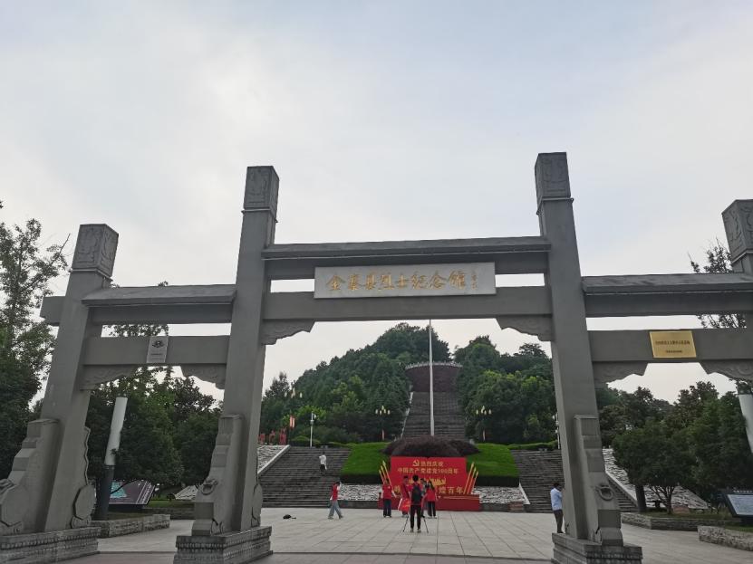 走完台阶后,看到金寨县革命烈士纪念塔,抵达了金寨县革命博物馆。馆内有很多逝世的红军干部照片、革命事迹介绍。博物馆出口处正是洪学智将军纪念碑和在抗战中牺牲的先烈们的墓碑,实践队员进行了庄重的鞠躬仪式,以表达对先烈的缅怀之情,同时了解他们的生平。他们用青春乃至生命,记录着一个又一个峥嵘岁月里的故事。