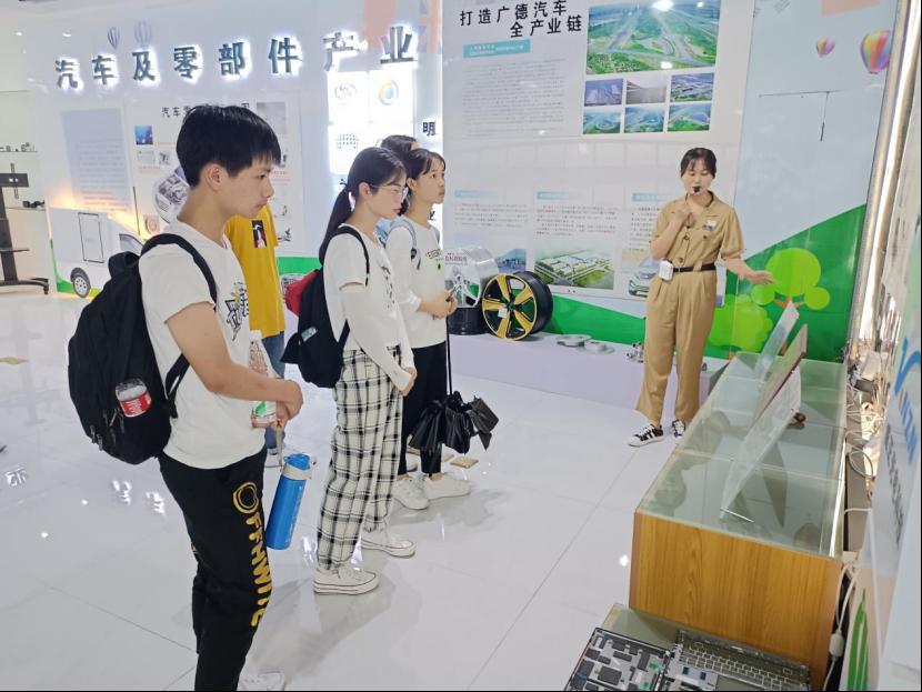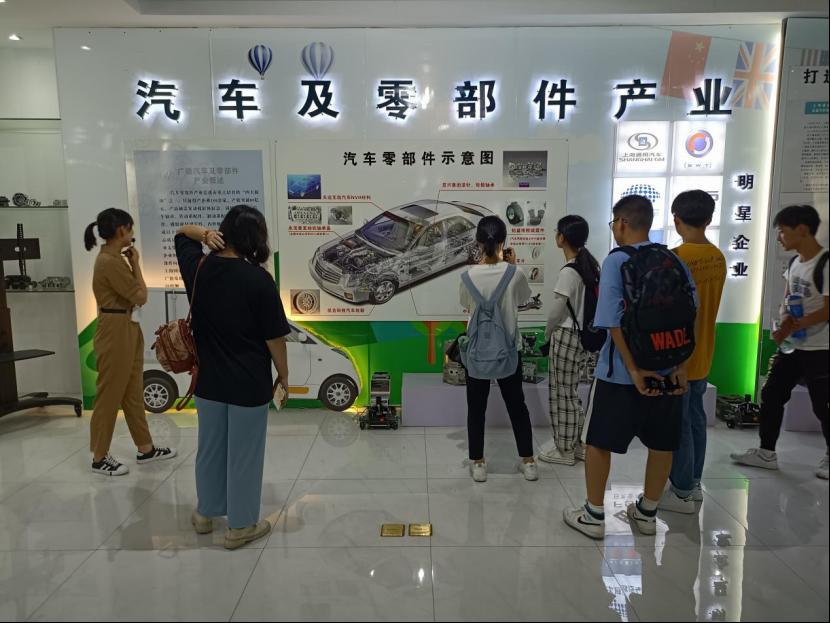 图为工作人员为实践队员讲解广德汽车及零部件产业发展状况。