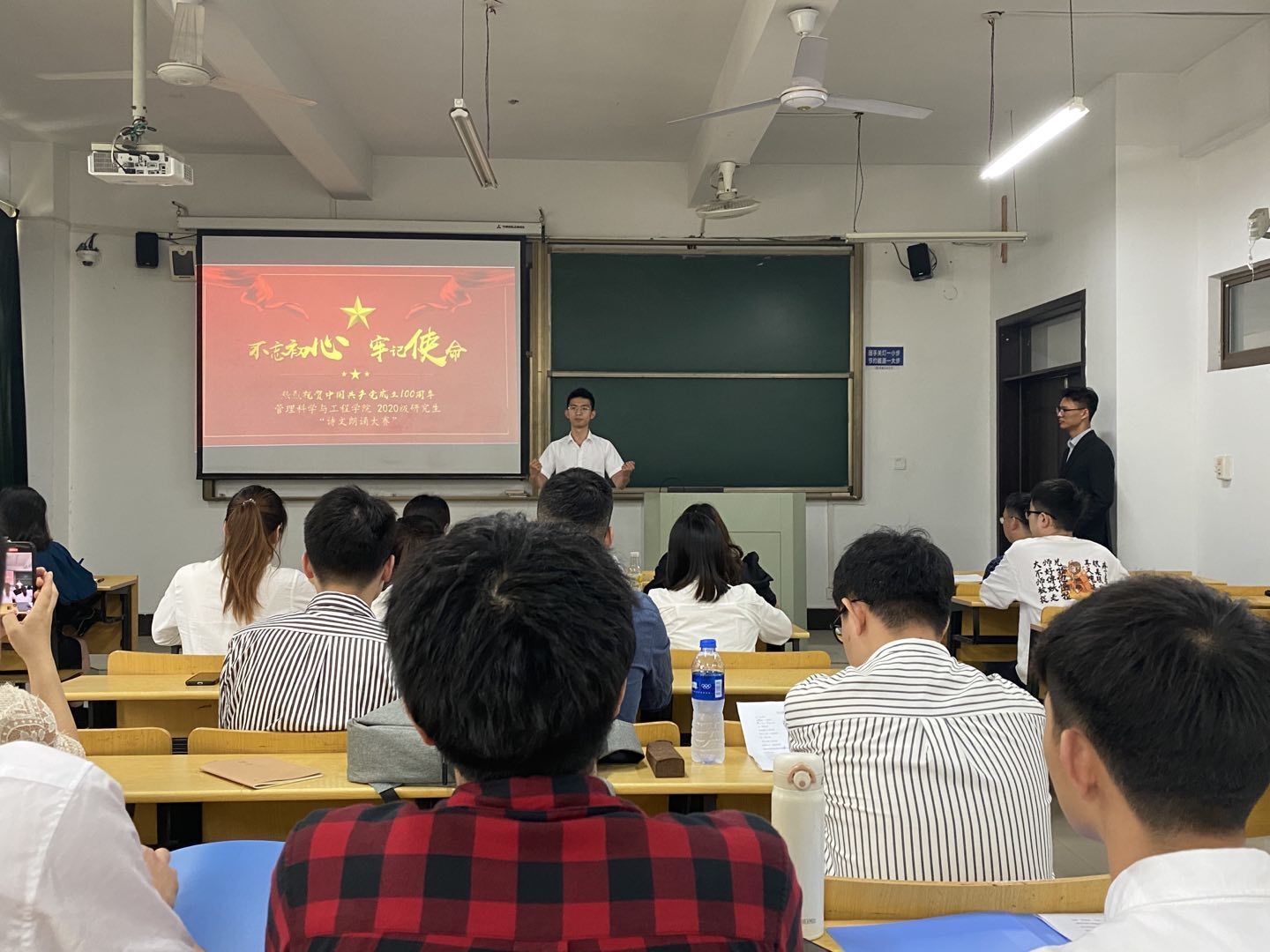 研究生学生党支部、研究生会在汇文楼D103成功举办“庆党建百年—红色诗歌朗诵”大赛。院党委副书记王功成、研究生辅导员杨卫玲应邀莅临现场。