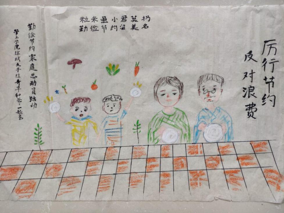 活动中多个家庭积极参与,由学院教职工及其子女共同完成了书法、绘画、手工艺制作等多种形式作品,小朋友们个个争做勤俭节约的小主人,注意日常节约的每一粒米、每一滴水,通过此次丰富多彩的节约教育活动,进一步提高了大家的节约意识,将勤俭节约活动贯穿于工作与生活的点点滴滴。